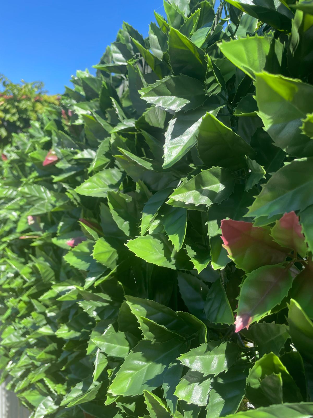 Questi pannelli sono delle pareti verdi artificiali utilizzati per decorare interni ed esterni. Possono essere utilizzati anche per creare aiuole orizzontali, per avere una zona verde a zero manutenzione. Tra le diverse tipologie di pannelli, questa è caratterizzata da foglie di tipologia Photinia. Sono di facile installazione e possono essere applicate con delle fascette su supporto di rete rigida oppure direttamente su parete con piccoli tasselli o sparapunti. Si tratta di pannelli vendibili singolarmente di misura 1 m x 1 m, a sua volta composti da quadrati da 50 cm x 50 xm scomponibili per creare forme diverse dal quadrato.